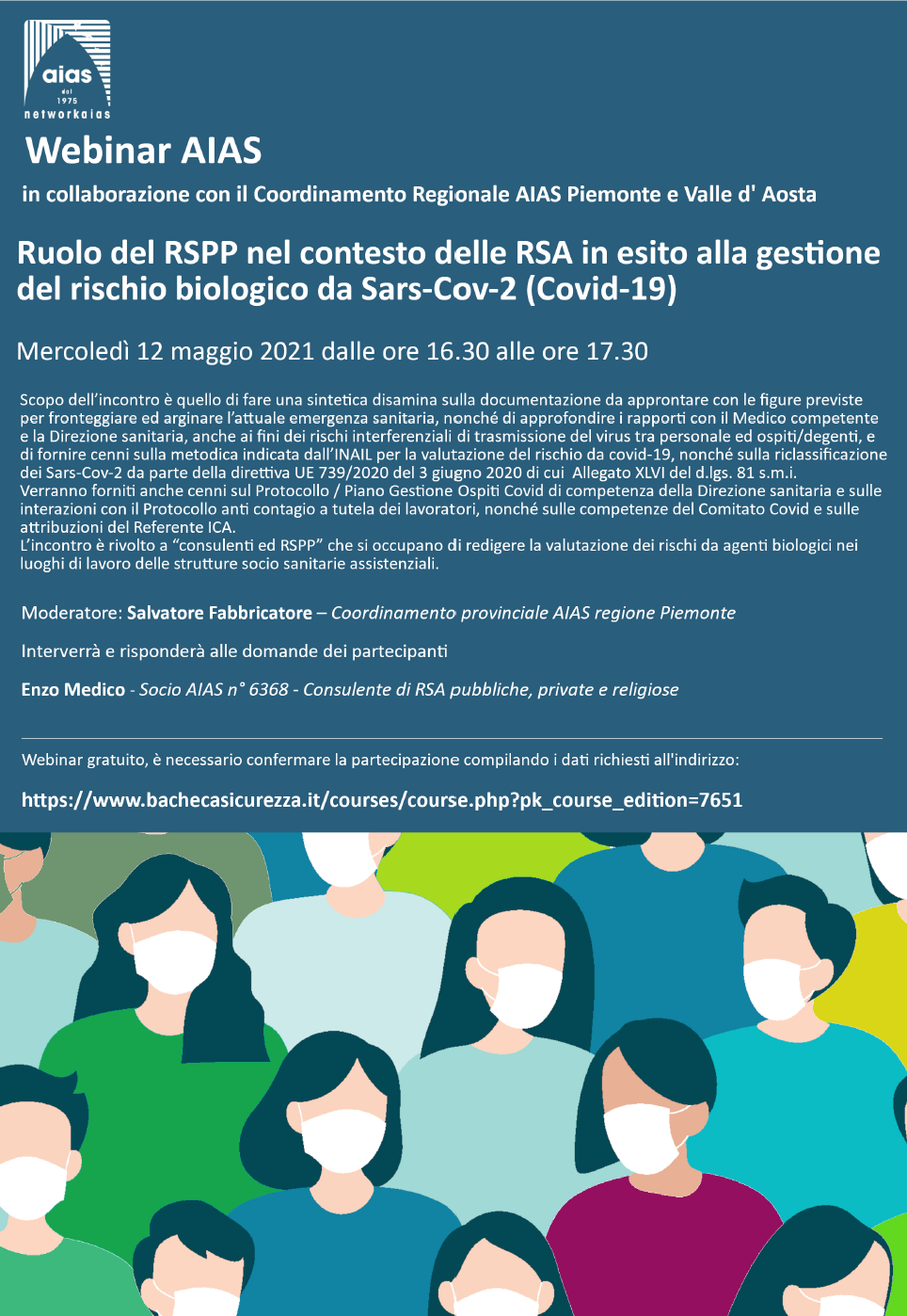 L’incontro è rivolto a “consulenti ed RSPP” che si occupano di redigere la valutazione dei rischi da agenti biologici nei luoghi di lavoro delle strutture socio sanitarie assistenziali.