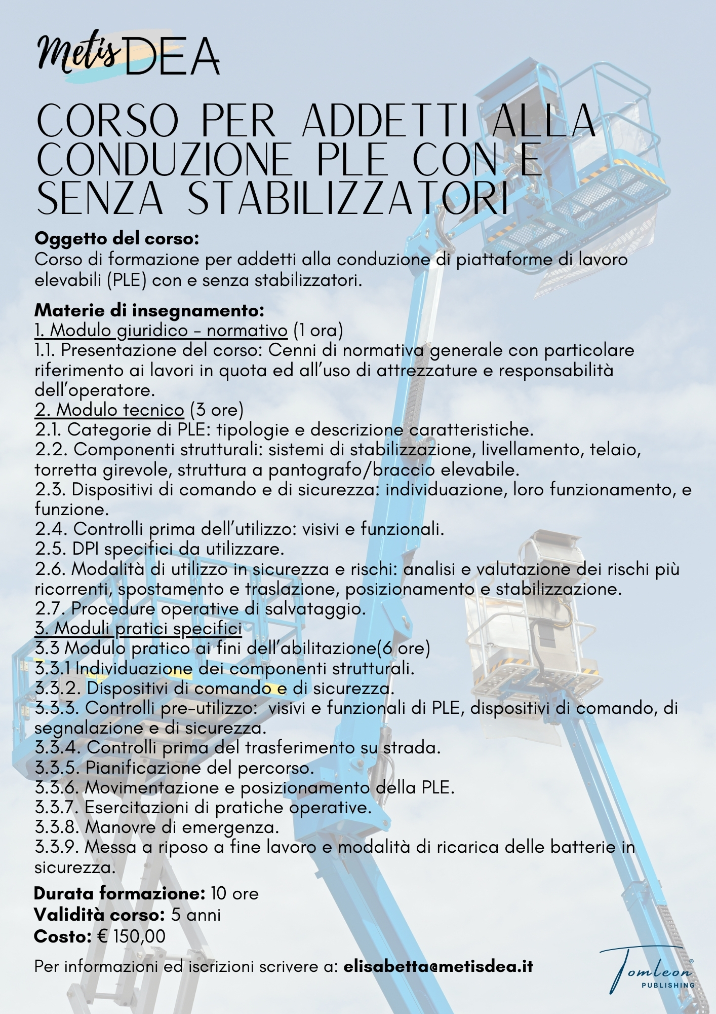 Alla lezione di pratica è obbligatorio presentarsi muniti di scarpe antinfortunistiche, casco protettivo, guanti e imbracatura con cordino di collegamento. Qualora non foste in possesso dei DPI necessari, chiediamo di comunicarlo al momento dell’iscrizione così da poter trovare una soluzione.
