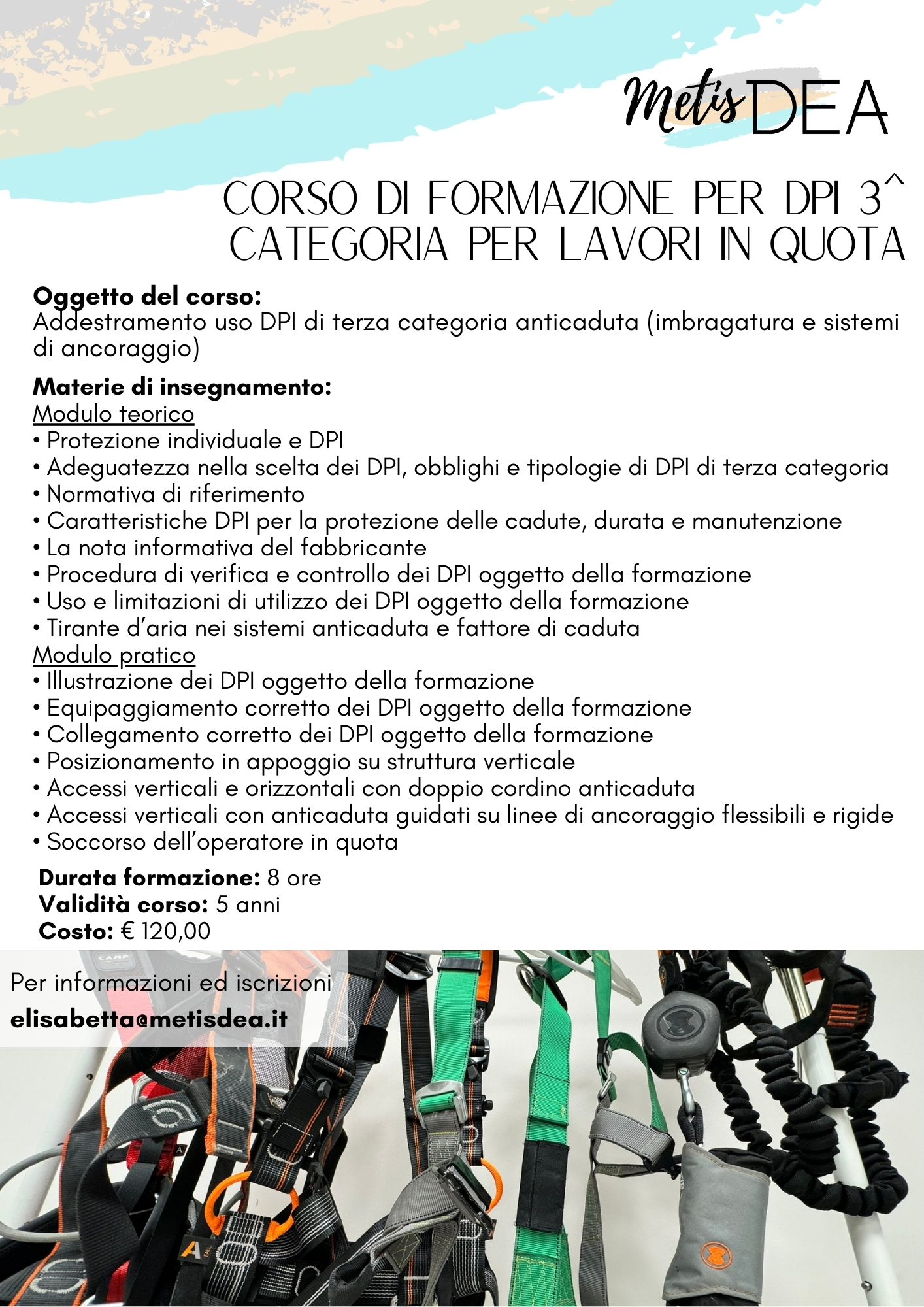 Addestramento e uso DPI 3° + corso di addestramento lavori in quota - 8 ore